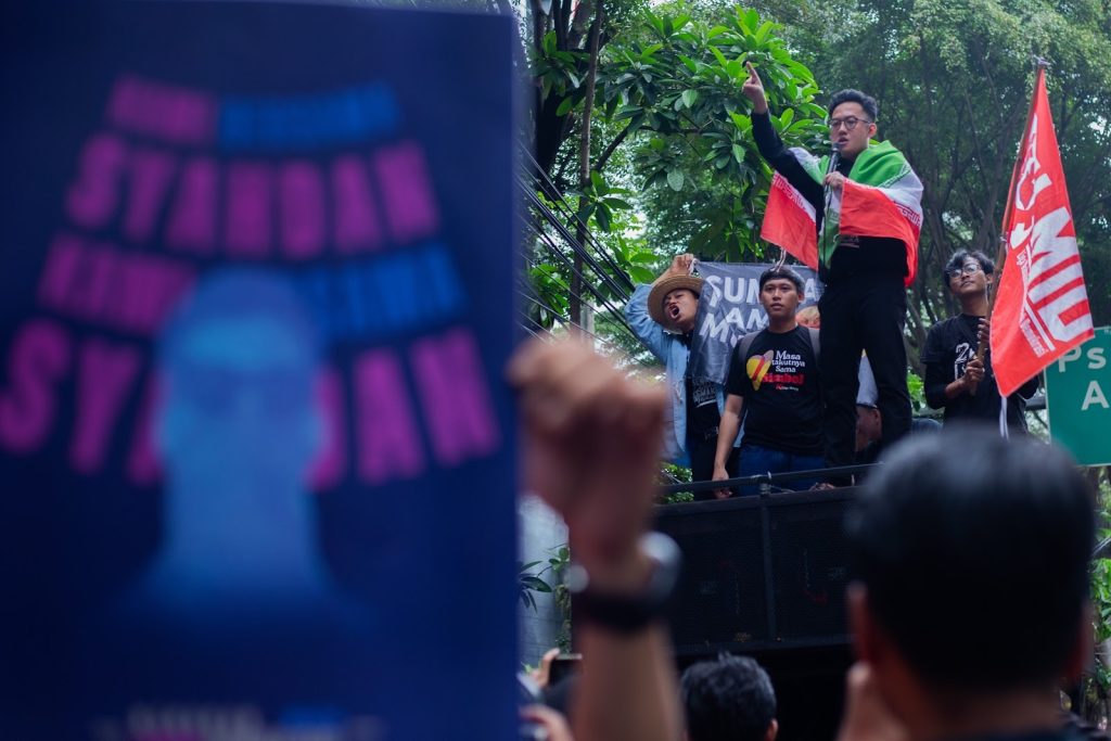 Massa aksi kemudian melanjutkan kegiatan dengan orasi di depan gedung pengadilan. Dalam orasi tersebut, para aktivis, pegiat demokrasi, serta peserta aksi menyampaikan tanggapan atas putusan sidang sekaligus menyoroti isu kebebasan berekspresi dan hak menyampaikan pendapat dalam demonstrasi.