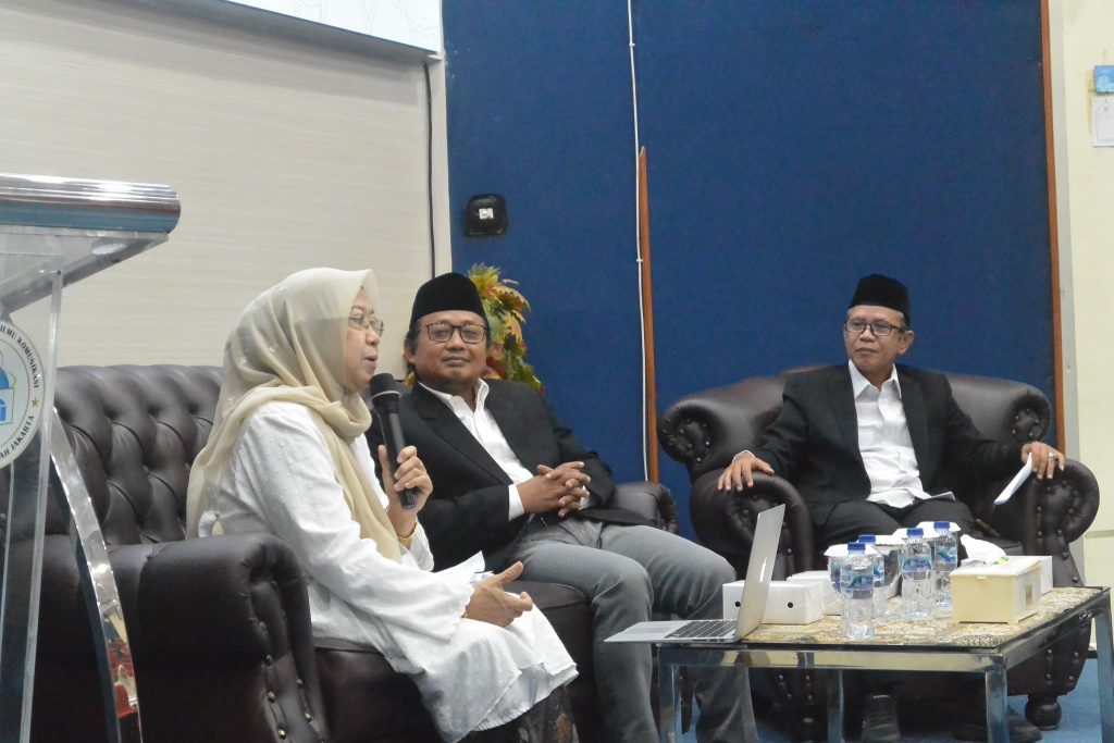 Sesi pemaparan materi oleh Dirjen Bina Penyelenggaraan Haji dan Umrah Kementerian Haji Republik Indonesia, Puji Raharjo, bersama Dosen Prodi Manajemen Dakwah, Hj. Mastanah (DNK TV/ Jannah Shiva)
