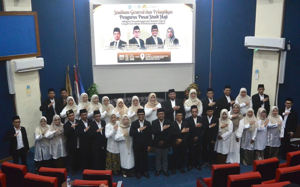 Pusat Studi Haji dan Umrah Fakultas Dakwah dan Ilmu Komunikasi (Fdikom) UIN Jakarta menyelenggarakan kegiatan Studium General dan Pelantikan Pengurus Pusat Studi Haji pada Senin (13/4) di Ruang Teater Lantai 2 Fdikom. Pengurus pusat studi tersebut secara resmi dilantik oleh Dekan Fdikom UIN Jakarta. Kegiatan ini mengangkat tema “Mitigasi Penyelenggaraan Ibadah Haji di Tengah Konstelasi Ketidakpastian Global”.